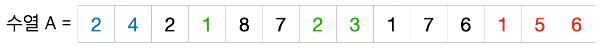 예를 들어 주어진 수열이 위와 같을 때 만들어 질 수 있는 증가하는 부분 수열은