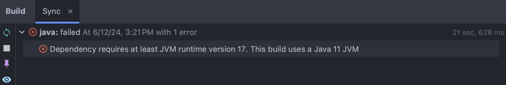 프로젝트를 오픈하고 간혹 다른프로젝트를 진행했었을 경우 아래와 같이 버전 문제가 발생할 수 있다.