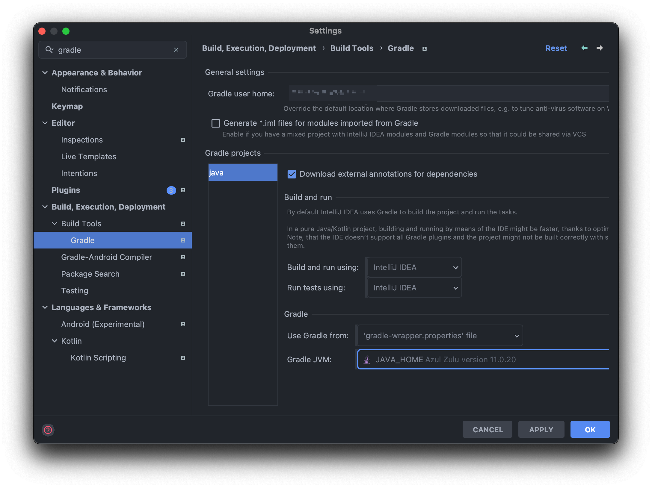 그래도 버전 문제가 발생한다면 인텔리제이 설정에서 gradle을 검색하고 Gradle JVM을 확인하여 프로젝트 버전과 맞춰준다.
