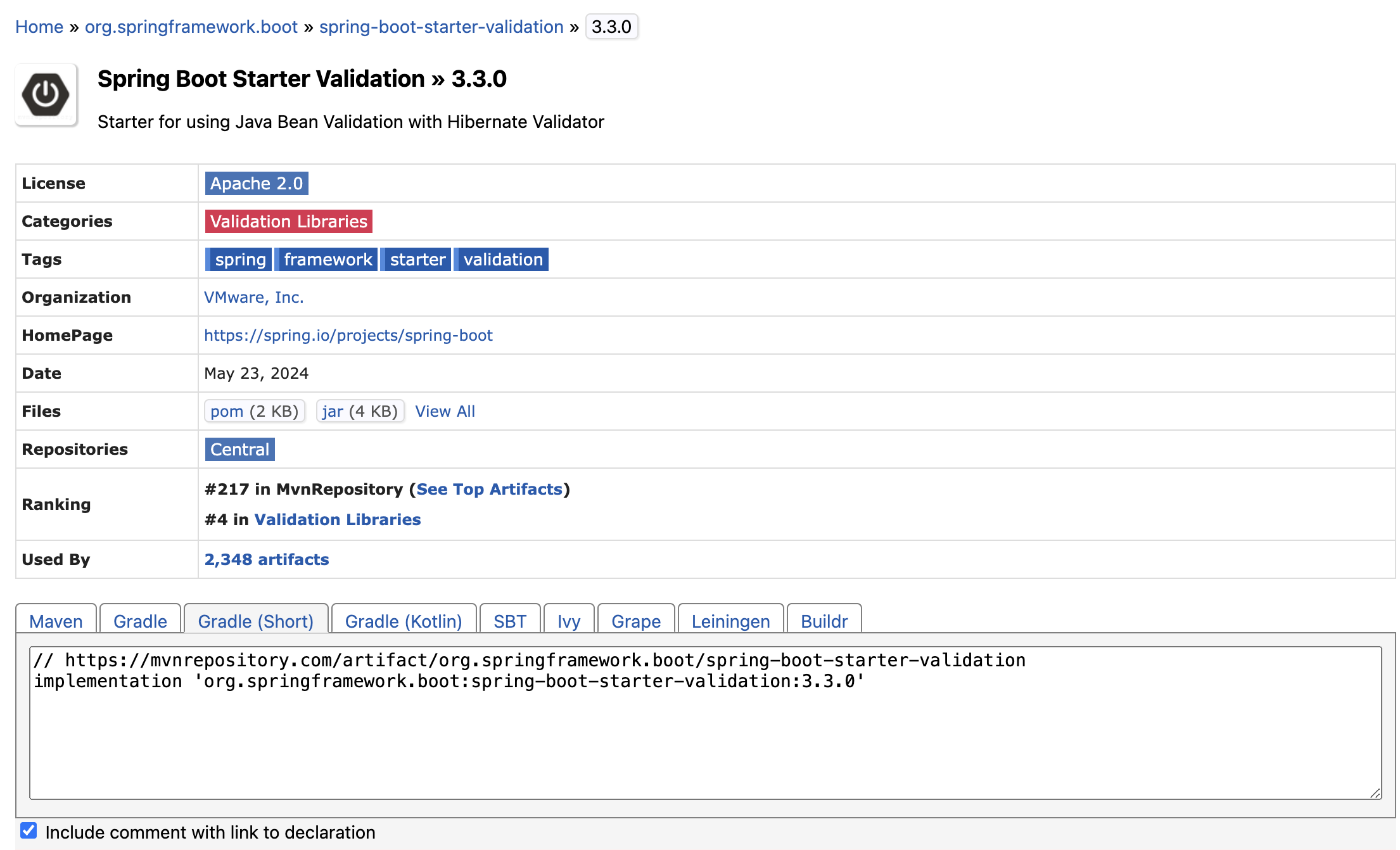 implementation 'org.springframework.boot:spring-boot-starter-validation'