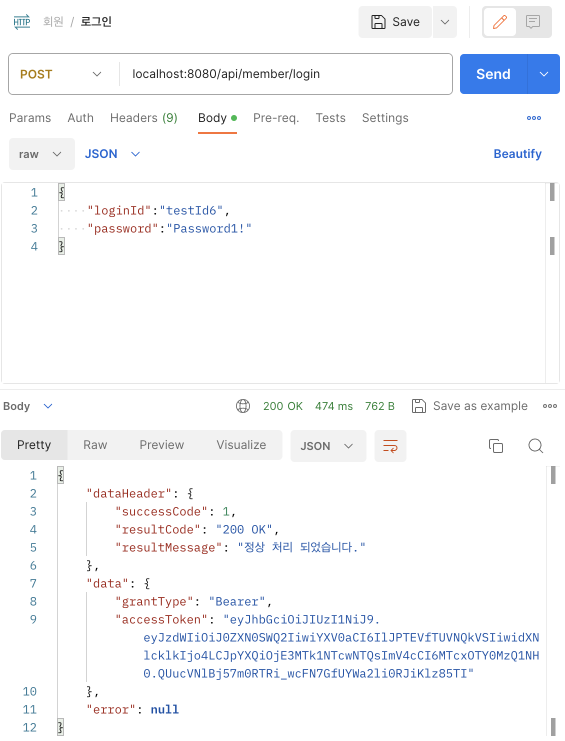 본 포스팅에서는 로그인 시 위 사진처럼 토큰과 GrantType을 명시해 줄 예정이다. refreshToken은 생략한다.