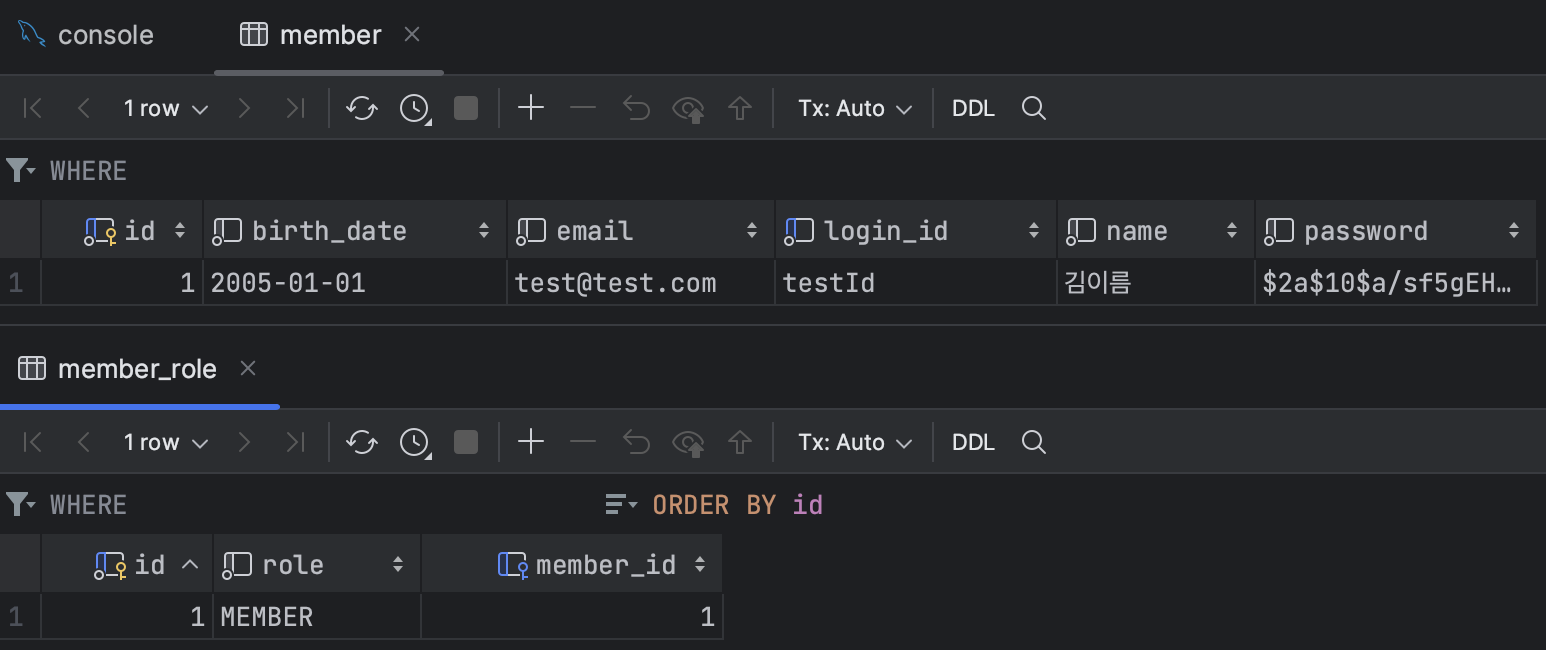 member_role이라는 테이블이 생성된 것을 확인할 수 있다.