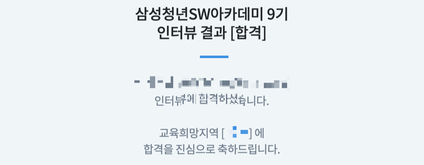위에서 싸피 면접은 다른면접보다 널널한 분위기라 말하였지만 싸피에 들어와 다른 분들과 얘기해봤을때 다 나와 비슷한 분위기는 아니었음을 느꼈다. 정말 힘든 면접을 봤던 분들도 계시고 나와 비슷하게 편한 분위기에서 쉬운 면접이라고 느낀 분들도 계시다.